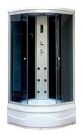 закрытая кабина, угловая, полностенная, двери раздвижные, материал поддона: акрил, материал стенок: стекло, турецкая баня, тропический душ, вертикальный гидромассаж, габариты (ШхВхД): 90x215x90 см
