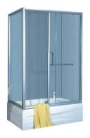 закрытая кабина, угловая, полностенная, комбинированная с ванной, двери раздвижные, материал стенок: стекло, тропический душ, вертикальный гидромассаж, габариты (ШхВхД): 88x218x170 см